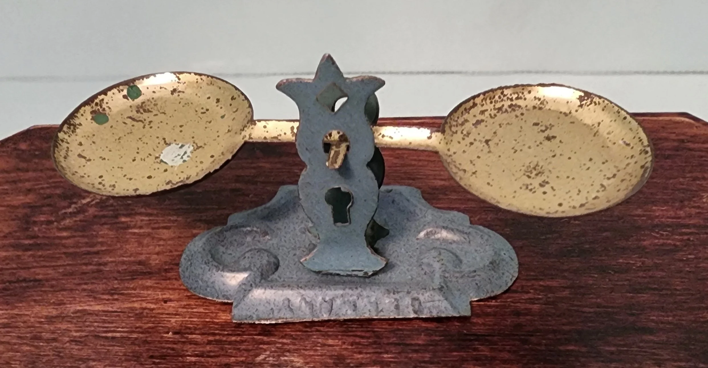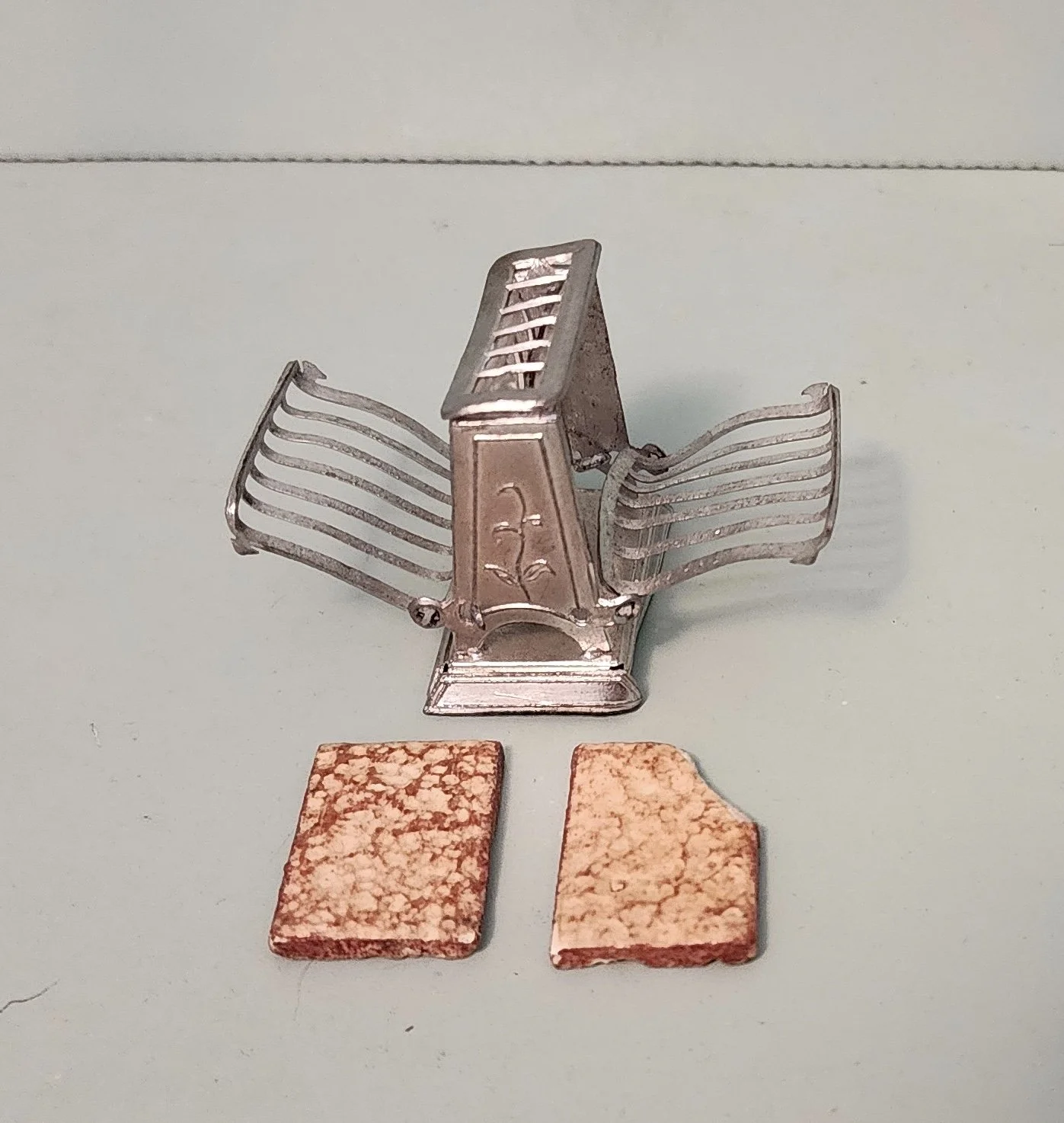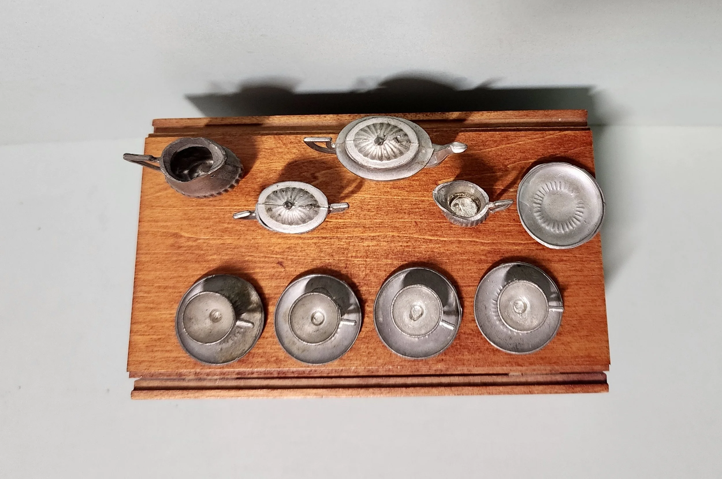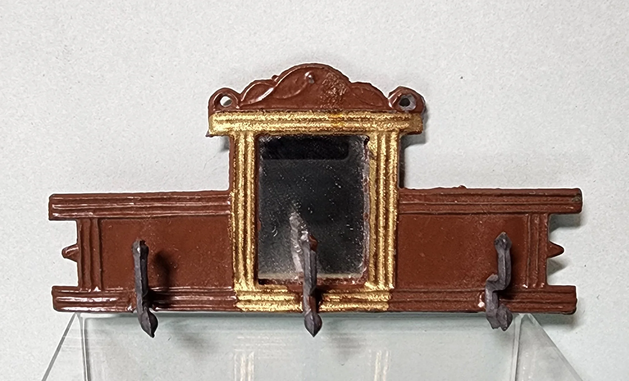 Accessories and Dolls Categories: All Dollhouses and Stores Antique and Vintage Furniture Accessories and Dolls Books and Publications All / 1930's German Metal Dollhouse Alarm Clock Pencil Sharpener $25.00 Antique German Soft Metal Mantel Clock $55.00 Antique German "Gasoline" Can $60.00 Antique Tin German Medicine Cabinet $65.00 Antique German Dollhouse Clock, Bakelite Pencil Sharpener $45.00 Vintage Metal Telephone, Made in England $20.00 Vintage Tin Coat Rack $25.00 Antique 7" China Head Doll $40.00 Antique German Tin Scale $45.00 German Soft Metal Serving Tray with Glass Insert $45.00 Antique German Dollhouse Soft Metal Cutlery Holder with Flatware $65.00 Vintage English Dollhouse Upright Vacuum $35.00 Antique German Dollhouse Typewriter $40.00 Antique German Dollhouse Tray $45.00 Antique Miniature Tin Cash Box $25.00 Antique German Coffee Server $55.00 Antique Tynietoy Hand Woven Rugs (2) $40.00 Antique German Bisque Dollhouse Man in Brown Suit $75.00 Antique German Bisque Dollhouse Doll $110.00 Antique Bisque Dollhouse Doll, Flapper Woman $70.00 Antique Bisque Dollhouse Woman 6 1/4" Tall $110.00 German Mantel Clock $55.00 German Serving Dish with Lid $5.00 German Crumb Brush and Pan $35.00 German Single Burner Hot Plate $20.00 German Metal Tea Set, 16 Pieces $95.00 German Soft Metal Electric Hot Plate $40.00 German Soft Metal Toaster With 2 Original Pieces of Toast $75.00 Vintage German Metal Coffee Set on a Tray $85.00 Vintage Miniature Black Tin Tray $25.00 Tynietoy Firewood Basket $25.00 German Metal Sewing Machine $70.00 Antique Miniature German Ballerina Figurine $25.00 Antique Tin German Dollhouse Baby Pram $25.00 Antique Gold Metal Wall Clock $85.00 Vintage German Dollhouse Lazy Susan That Actually Turns $45.00 Pair of Fancy French Dollhouse Candle Holders $35.00 Antique German Bisque 3 3/4" Dollhouse Maid $55.00 Antique Metal Serving Tray $35.00 Erna Meyer Girl in Plaid Dress $40.00 Erna Meyer Boy in Outdoor Outfit $45.00 Erna Meyer Girl in Orange Knickers $45.00 Erna Meyer Boy, Navy Blue Pants $45.00 Erna Meyer Girl in Blue Dress $45.00 Erna Meyer Dolls, Twins $65.00 Five Vintage Empty (Caco) Doll Boxes $15.00 German 5 1/2" Tall Black Bisque Dollhouse Doll $175.00 German Dollhouse Doll, 6 1/2" Tall $75.00 Pair of Small Vintage Steiff Mohair Bears $25.00 4 Vintage English Miniature Wax Dolls $45.00 Vintage German Caco Man Doctor $45.00 Vintage German Caco Man $45.00 Vintage Miniature Sugar Sample Boxes $15.00 4 Vintage Miniature Grocery Boxes $15.00 German Caco Baby in Cradle $35.00 German Caco Baby in Tin Stroller $35.00 German Caco Baby in Wicker Basket $35.00 Vintage Erna Meyer Brown Haired Baby Girl #3 $10.00 Vintage Erna Meyer Baby Girl Doll #2 $15.00 Vintage Erna Meyer Baby Doll #1 $15.00 Miniature Book, "The Call of Life", 1962 $20.00 Miniature Book, Harriet Beecher Stowe, Her Book, 1962 $55.00 Miniature Book, Grimm's Fairy Tales, 1963 $35.00 Caco Baby Doll with Changing Table and Accessories $55.00 Antique German Gottschalk Blanket / Towel Rack $32.00 1910 Gottschalk Kitchen Shelf $35.00 German Metal Push Lawn Mower, Tynietoy Accessory $65.00 German Electric Iron with Wall Plug $35.00 German Silverware Caddy with 18 Pieces of Silverware $65.00 German Three Piece Chafing Dish $55.00 German Metal Flat Iron $30.00 German Metal Cooking Set on Original Card $35.00 Antique German Kitchen Utensils in Metal Mesh Caddy $45.00 Bakelite "Art Deco" Style Table Top Radio $30.00 Antique German Tin Hinged Top Watering Can & Tub $55.00 German Kitchen Brush Holder with Brush $20.00 Vintage Pair of Metal Table Top Picture Frames, 1" Scale $30.00 Vintage 6 Piece Cleaning Set $20.00 Vintage Wooden Dollhouse Carpet Sweeper & Wooden Mop $15.00 German Painted Bisque Bride & Groom in Original Box $45.00 German wood Baby Walker with Bisque Baby Doll $35.00 German Dollhouse Table Lamp with Glass Shade $30.00 Antique German Dollhouse Lamp with Celluloid Shade $30.00 German Soft Metal Modern Style Bird Cage $25.00 Dolly Dear Book Ends with Books $20.00 Dolly Dear Framed Wall Picture $30.00 Dolly Dear Turkey Platters $15.00 Bodo Henning Cooking 4 Piece Cooking Set $15.00 Bodo Henning Dinner Set, Original Box $20.00 Vintage Turned Solid Brass Table Lamp with Removable Blue Shade $20.00 Vintage Pair of Solid Brass Table Lamps, Removable White Shades $35.00 Vintage Pair of Solid Brass Table Lamps with Burgundy Shades $35.00 Vintage Miniature Salt & Pepper Shaker with Stand $15.00 German "Miniature Kitchen Set" Mint on Card $45.00 German Sauce Pan Set on Original Card $25.00 Mint on Original Card, Set of 3 Sauce Pans, Made in Japan $20.00 Antique Small Doll Size Suitcase $35.00 Antique German Tin Canister Set of Two $55.00 Antique Wood Dollhouse Floor Lamp with Old Light Blub $20.00 Gottschalk Kitchen Rack with Metal Rod, 1910 $25.00 Vintage Tiny Dollhouse Brass Baby Pacifier $10.00 Antique German Miniature Tin Painted Bathtub, Most Likely Marklin $30.00 Antique Tin Dollhouse Stove with German Accessoried $55.00 German Soft Metal Cook Stove 1" Scale $55.00 Vintage Fireplace 3 Piece Tool Set with Stand, and Log Holder, 1" Scale $25.00 Vintage Plate of Fish with "Tripe" Sign, 1" Scale $5.00 Dowst - Tootsietoy Coffee Set, 8 Pieces $25.00 Strombecker 1" Scale Floor Lamp with Gold Swirl Shade $15.00 Strombecker 1" Scale Dark Blue Wooden Table Lamp $10.00 Grandmother Stovers "Father To Be Kit" Unopened 1957 $10.00 Vintage Metal Treadle Sewing Machine & Cash Register $10.00 Vintage Miniature Sewing Box $15.00 Vintage Wooden Christmas Garden Bridge $15.00 Vintage Metal Christmas Garden Trellis $15.00 Tiny Tin Furniture, 4 Pieces $15.00 "Bend-A-Family Mom, Brother & Sister with Stroller $10.00 "Zenith" Old Style Computer, Digital Clock $10.00