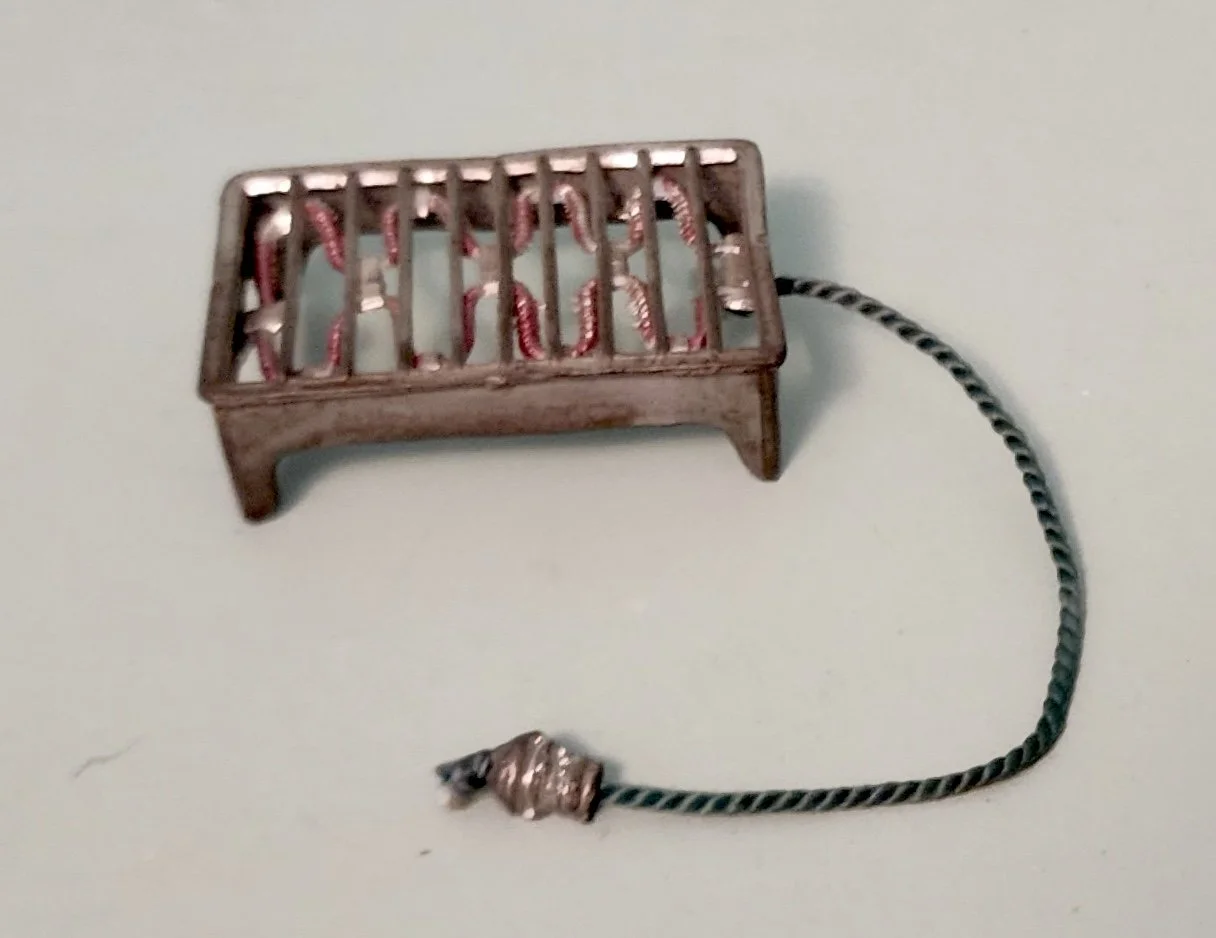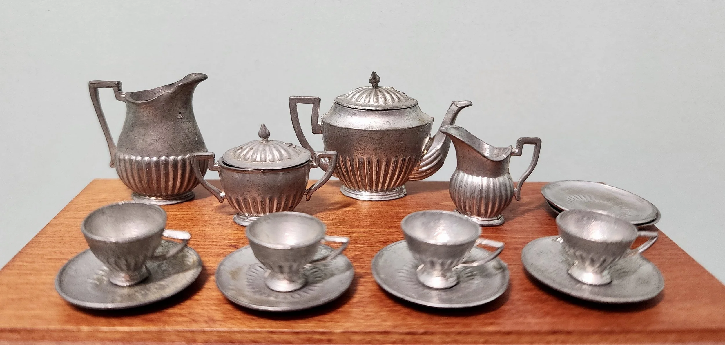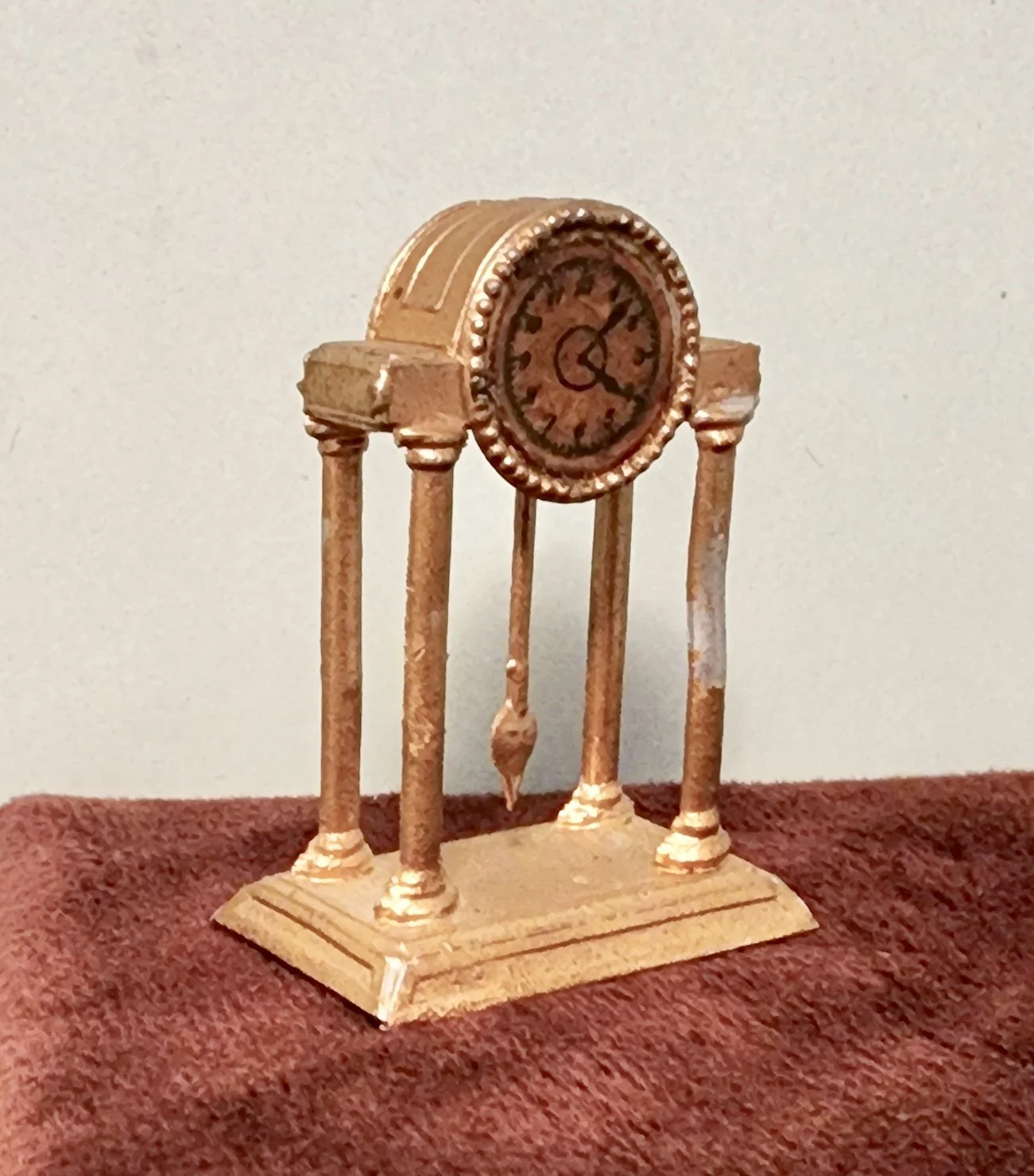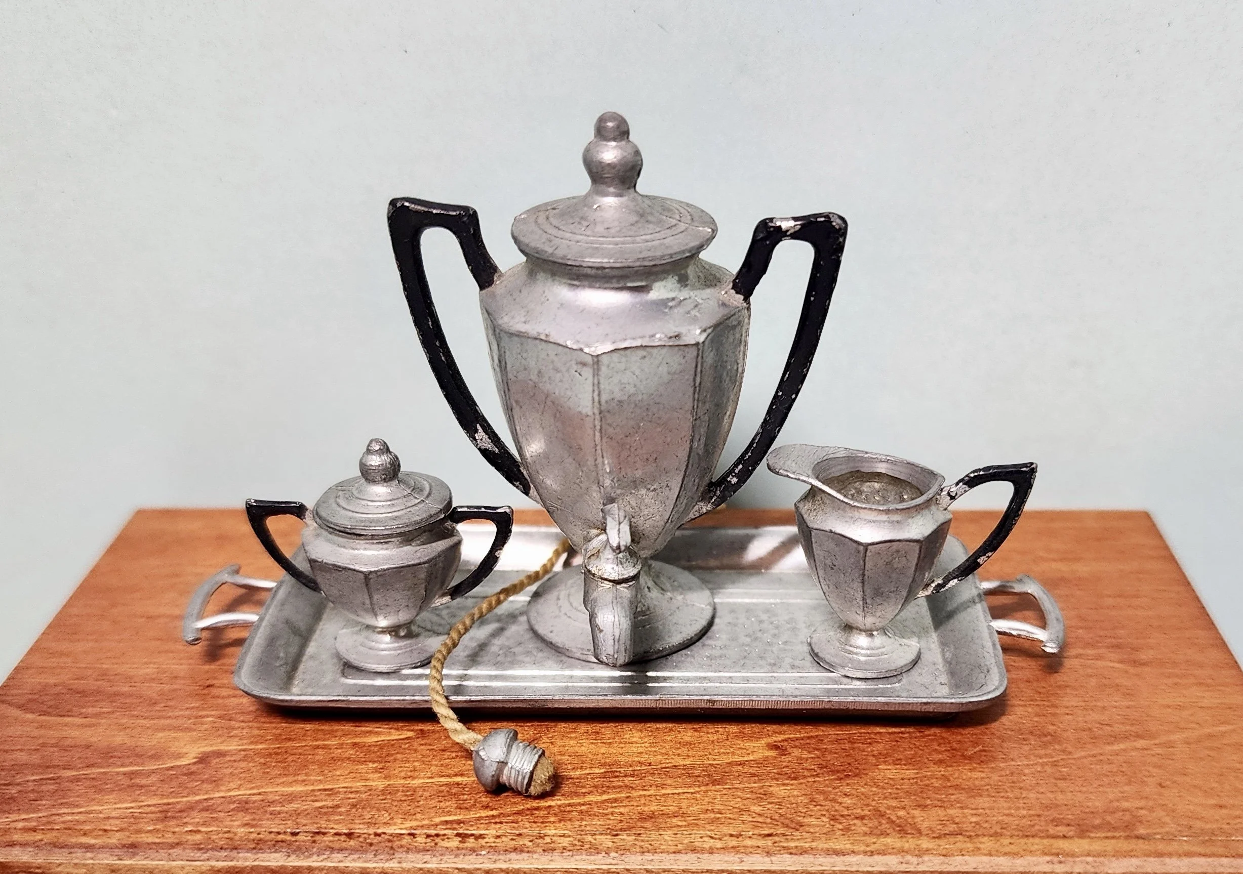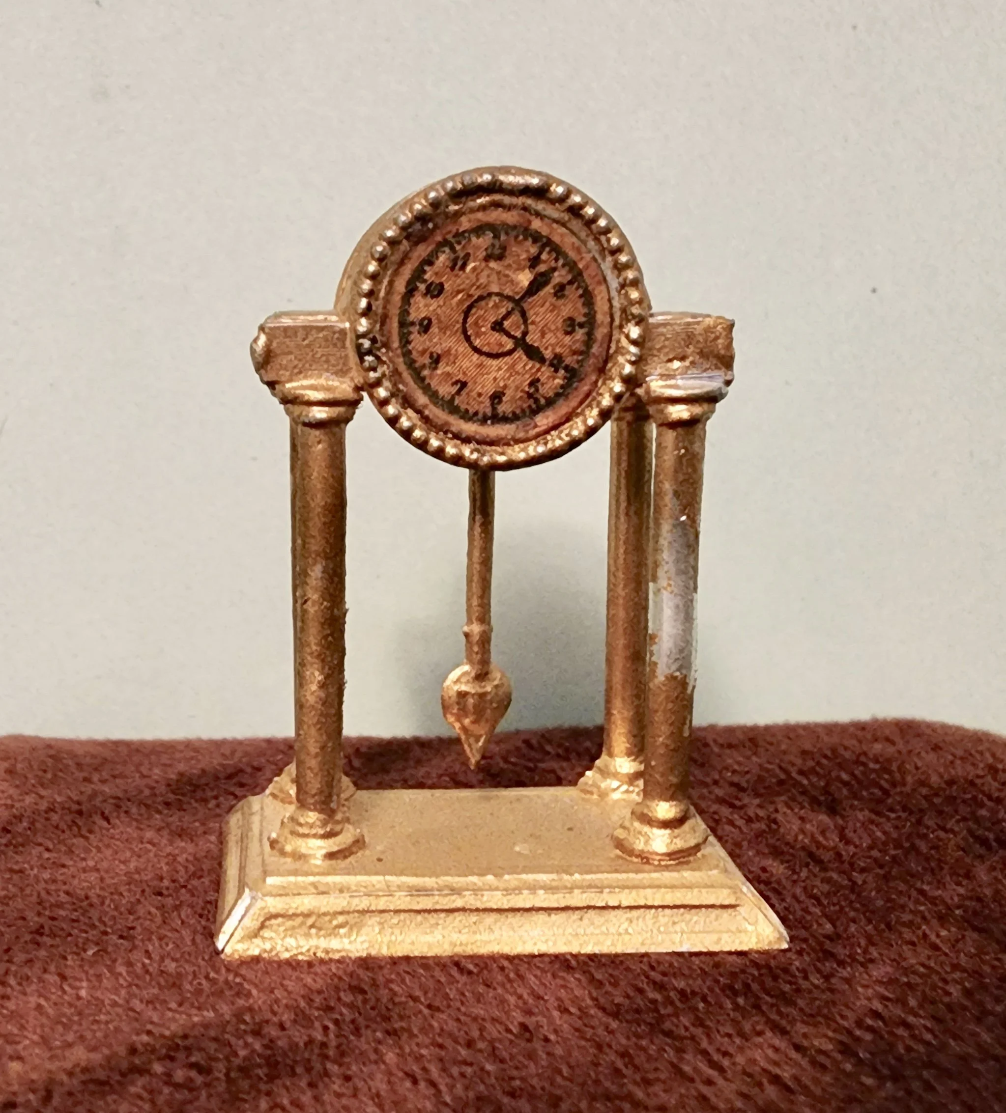 Accessories and Dolls Categories: All Dollhouses and Stores Antique and Vintage Furniture Accessories and Dolls Books and Publications All / 1930's German Metal Dollhouse Alarm Clock Pencil Sharpener $25.00 Antique German Soft Metal Mantel Clock $55.00 Antique German "Gasoline" Can $60.00 Antique Tin German Medicine Cabinet $65.00 Antique German Dollhouse Clock, Bakelite Pencil Sharpener $45.00 Vintage Metal Telephone, Made in England $20.00 Vintage Tin Coat Rack $25.00 Antique 7" China Head Doll $40.00 Antique German Tin Scale $45.00 German Soft Metal Serving Tray with Glass Insert $45.00 Antique German Dollhouse Soft Metal Cutlery Holder with Flatware $65.00 Vintage English Dollhouse Upright Vacuum $35.00 Antique German Dollhouse Typewriter $40.00 Antique German Dollhouse Tray $45.00 Antique Miniature Tin Cash Box $25.00 Antique German Coffee Server $55.00 Antique Tynietoy Hand Woven Rugs (2) $40.00 Antique German Bisque Dollhouse Man in Brown Suit $75.00 Antique German Bisque Dollhouse Doll $110.00 Antique Bisque Dollhouse Doll, Flapper Woman $70.00 Antique Bisque Dollhouse Woman 6 1/4" Tall $110.00 German Mantel Clock $55.00 German Serving Dish with Lid $5.00 German Crumb Brush and Pan $35.00 German Single Burner Hot Plate $20.00 German Metal Tea Set, 16 Pieces $95.00 German Soft Metal Electric Hot Plate $40.00 German Soft Metal Toaster With 2 Original Pieces of Toast $75.00 Vintage German Metal Coffee Set on a Tray $85.00 Vintage Miniature Black Tin Tray $25.00 Tynietoy Firewood Basket $25.00 German Metal Sewing Machine $70.00 Antique Miniature German Ballerina Figurine $25.00 Antique Tin German Dollhouse Baby Pram $25.00 Antique Gold Metal Wall Clock $85.00 Vintage German Dollhouse Lazy Susan That Actually Turns $45.00 Pair of Fancy French Dollhouse Candle Holders $35.00 Antique German Bisque 3 3/4" Dollhouse Maid $55.00 Antique Metal Serving Tray $35.00 Erna Meyer Girl in Plaid Dress $40.00 Erna Meyer Boy in Outdoor Outfit $45.00 Erna Meyer Girl in Orange Knickers $45.00 Erna Meyer Boy, Navy Blue Pants $45.00 Erna Meyer Girl in Blue Dress $45.00 Erna Meyer Dolls, Twins $65.00 Five Vintage Empty (Caco) Doll Boxes $15.00 German 5 1/2" Tall Black Bisque Dollhouse Doll $175.00 German Dollhouse Doll, 6 1/2" Tall $75.00 Pair of Small Vintage Steiff Mohair Bears $25.00 4 Vintage English Miniature Wax Dolls $45.00 Vintage German Caco Man Doctor $45.00 Vintage German Caco Man $45.00 Vintage Miniature Sugar Sample Boxes $15.00 4 Vintage Miniature Grocery Boxes $15.00 German Caco Baby in Cradle $35.00 German Caco Baby in Tin Stroller $35.00 German Caco Baby in Wicker Basket $35.00 Vintage Erna Meyer Brown Haired Baby Girl #3 $10.00 Vintage Erna Meyer Baby Girl Doll #2 $15.00 Vintage Erna Meyer Baby Doll #1 $15.00 Miniature Book, "The Call of Life", 1962 $20.00 Miniature Book, Harriet Beecher Stowe, Her Book, 1962 $55.00 Miniature Book, Grimm's Fairy Tales, 1963 $35.00 Caco Baby Doll with Changing Table and Accessories $55.00 Antique German Gottschalk Blanket / Towel Rack $32.00 1910 Gottschalk Kitchen Shelf $35.00 German Metal Push Lawn Mower, Tynietoy Accessory $65.00 German Electric Iron with Wall Plug $35.00 German Silverware Caddy with 18 Pieces of Silverware $65.00 German Three Piece Chafing Dish $55.00 German Metal Flat Iron $30.00 German Metal Cooking Set on Original Card $35.00 Antique German Kitchen Utensils in Metal Mesh Caddy $45.00 Bakelite "Art Deco" Style Table Top Radio $30.00 Antique German Tin Hinged Top Watering Can & Tub $55.00 German Kitchen Brush Holder with Brush $20.00 Vintage Pair of Metal Table Top Picture Frames, 1" Scale $30.00 Vintage 6 Piece Cleaning Set $20.00 Vintage Wooden Dollhouse Carpet Sweeper & Wooden Mop $15.00 German Painted Bisque Bride & Groom in Original Box $45.00 German wood Baby Walker with Bisque Baby Doll $35.00 German Dollhouse Table Lamp with Glass Shade $30.00 Antique German Dollhouse Lamp with Celluloid Shade $30.00 German Soft Metal Modern Style Bird Cage $25.00 Dolly Dear Book Ends with Books $20.00 Dolly Dear Framed Wall Picture $30.00 Dolly Dear Turkey Platters $15.00 Bodo Henning Cooking 4 Piece Cooking Set $15.00 Bodo Henning Dinner Set, Original Box $20.00 Vintage Turned Solid Brass Table Lamp with Removable Blue Shade $20.00 Vintage Pair of Solid Brass Table Lamps, Removable White Shades $35.00 Vintage Pair of Solid Brass Table Lamps with Burgundy Shades $35.00 Vintage Miniature Salt & Pepper Shaker with Stand $15.00 German "Miniature Kitchen Set" Mint on Card $45.00 German Sauce Pan Set on Original Card $25.00 Mint on Original Card, Set of 3 Sauce Pans, Made in Japan $20.00 Antique Small Doll Size Suitcase $35.00 Antique German Tin Canister Set of Two $55.00 Antique Wood Dollhouse Floor Lamp with Old Light Blub $20.00 Gottschalk Kitchen Rack with Metal Rod, 1910 $25.00 Vintage Tiny Dollhouse Brass Baby Pacifier $10.00 Antique German Miniature Tin Painted Bathtub, Most Likely Marklin $30.00 Antique Tin Dollhouse Stove with German Accessoried $55.00 German Soft Metal Cook Stove 1" Scale $55.00 Vintage Fireplace 3 Piece Tool Set with Stand, and Log Holder, 1" Scale $25.00 Vintage Plate of Fish with "Tripe" Sign, 1" Scale $5.00 Dowst - Tootsietoy Coffee Set, 8 Pieces $25.00 Strombecker 1" Scale Floor Lamp with Gold Swirl Shade $15.00 Strombecker 1" Scale Dark Blue Wooden Table Lamp $10.00 Grandmother Stovers "Father To Be Kit" Unopened 1957 $10.00 Vintage Metal Treadle Sewing Machine & Cash Register $10.00 Vintage Miniature Sewing Box $15.00 Vintage Wooden Christmas Garden Bridge $15.00 Vintage Metal Christmas Garden Trellis $15.00 Tiny Tin Furniture, 4 Pieces $15.00 "Bend-A-Family Mom, Brother & Sister with Stroller $10.00 "Zenith" Old Style Computer, Digital Clock $10.00