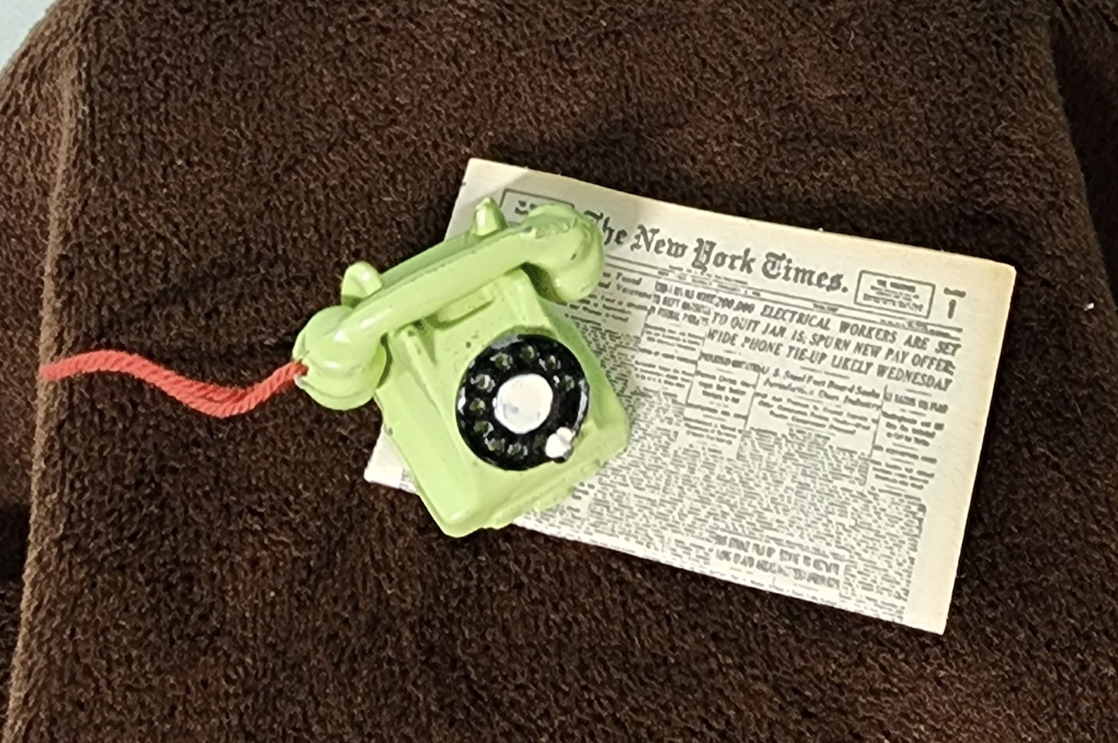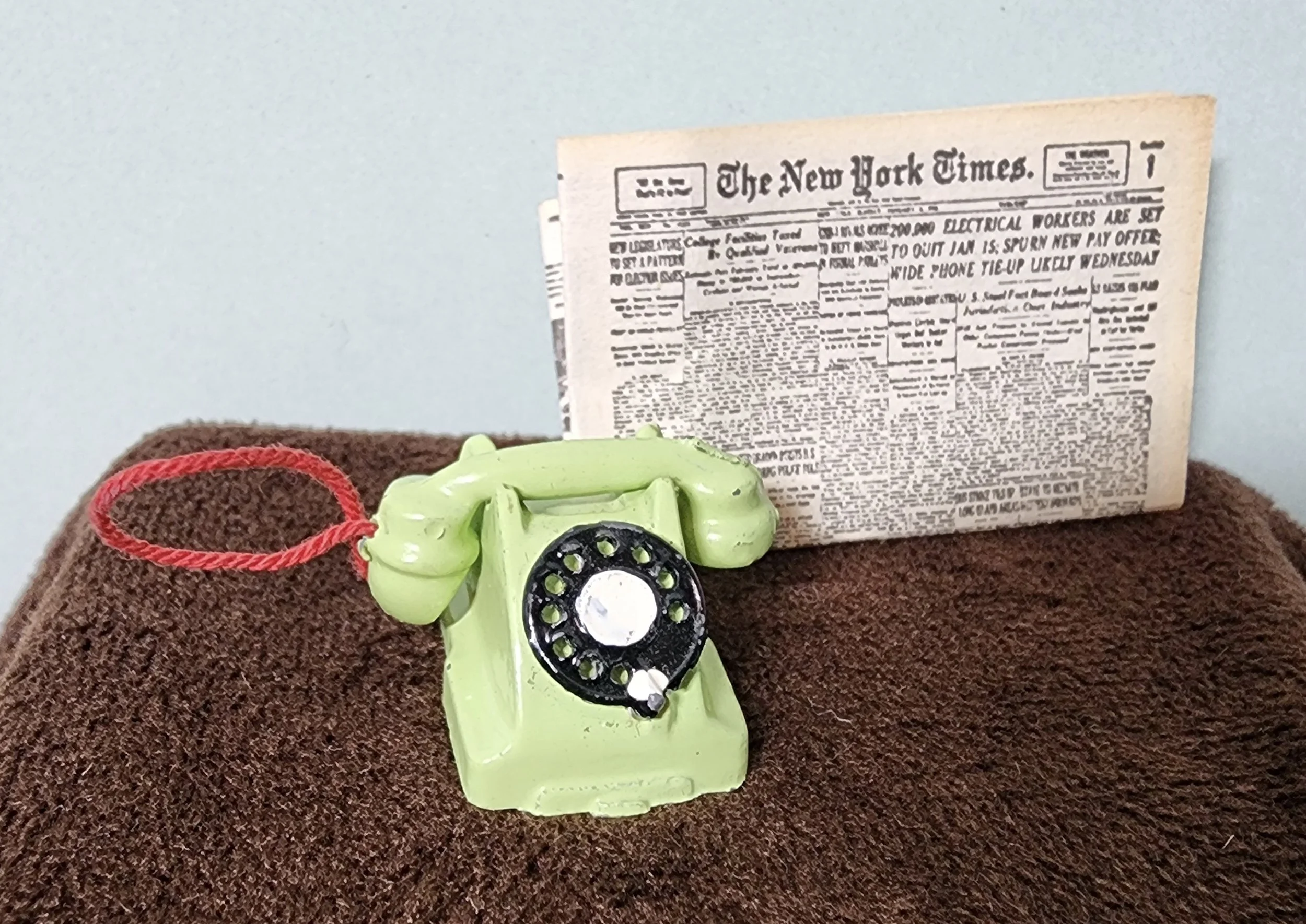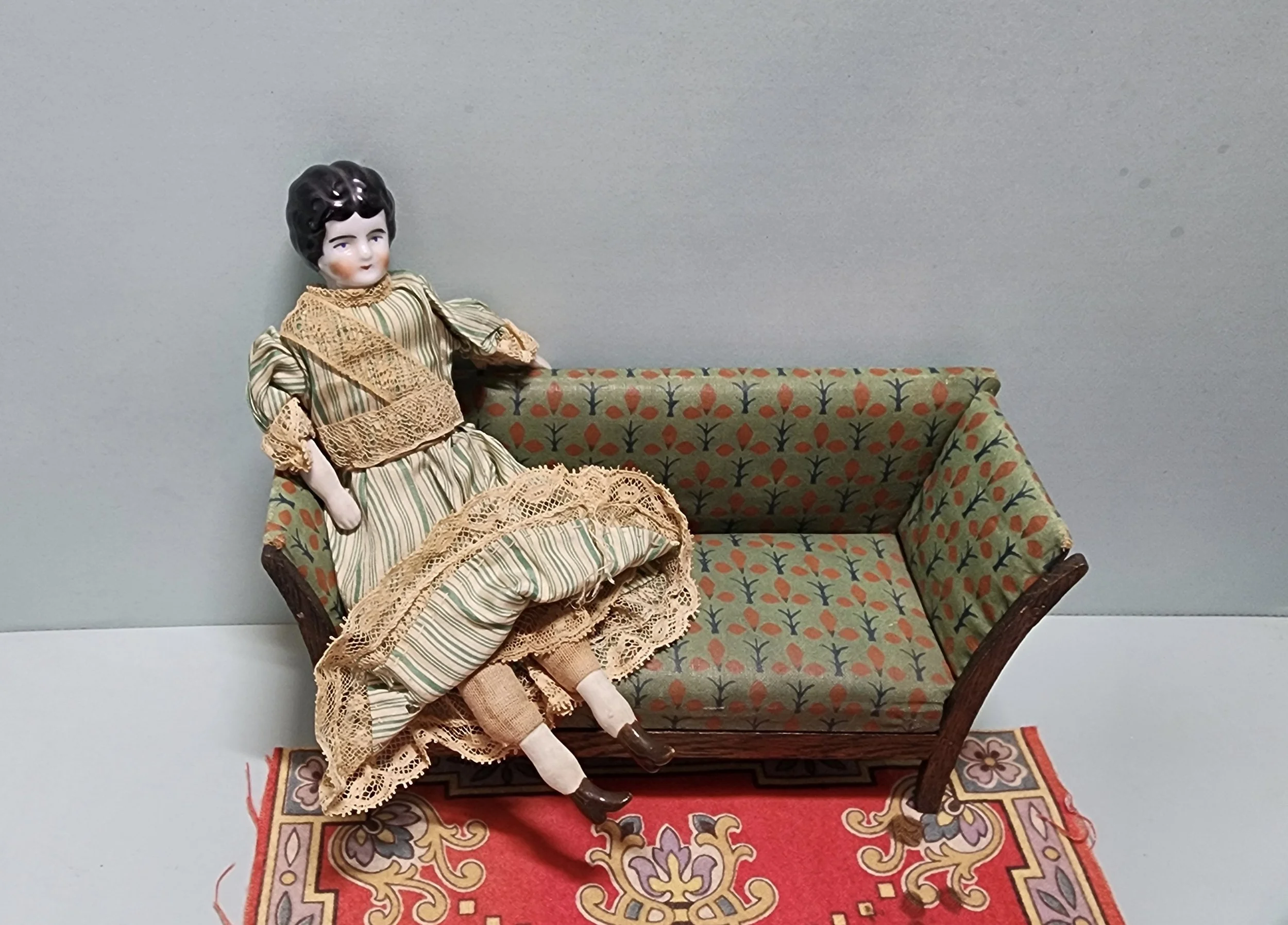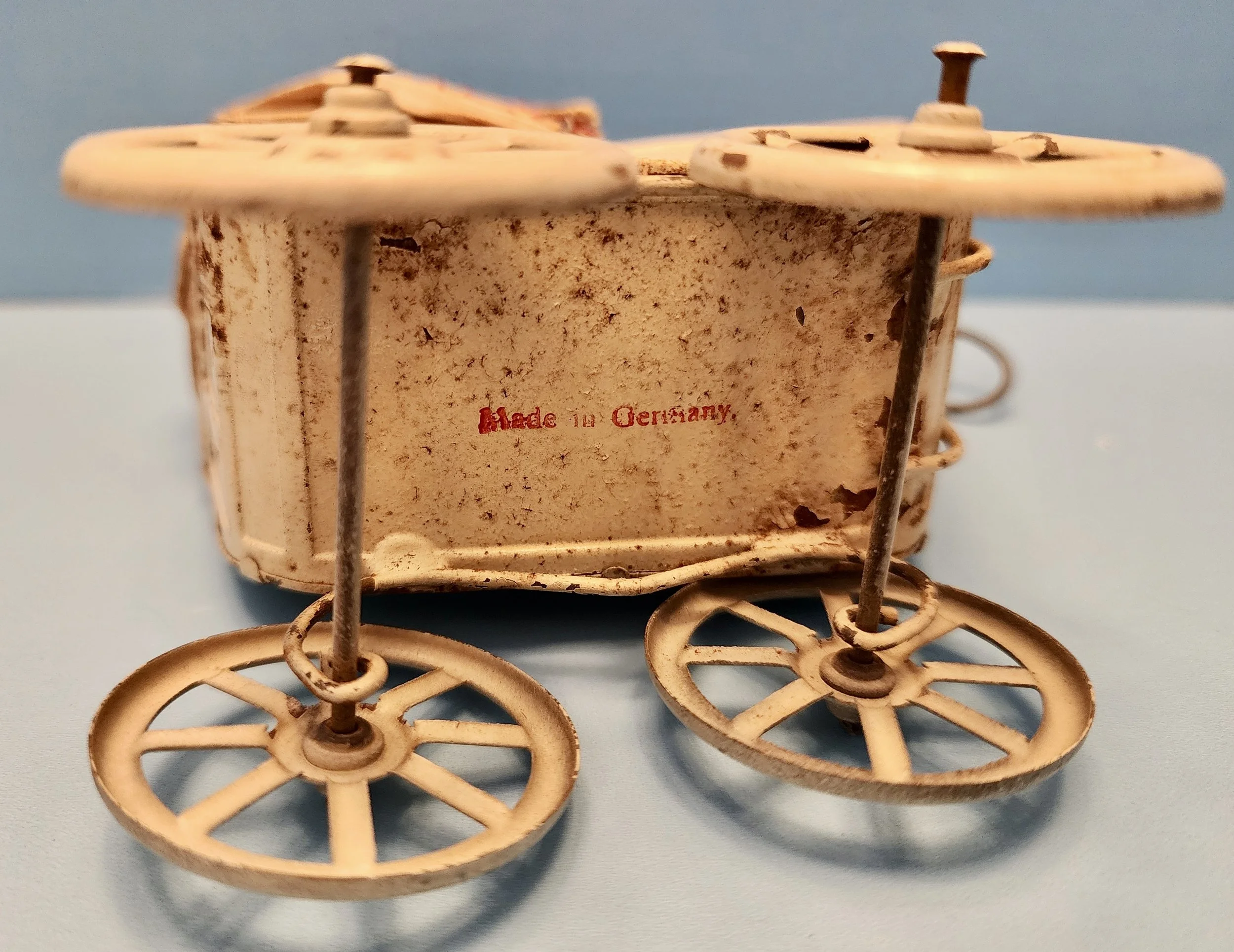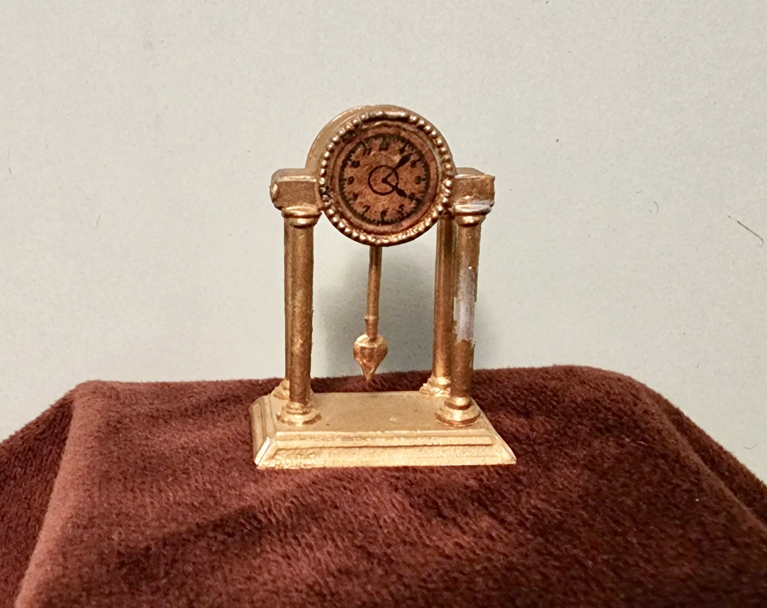 Accessories and Dolls Categories: All Dollhouses and Stores Antique and Vintage Furniture Accessories and Dolls Books and Publications All / 1930's German Metal Dollhouse Alarm Clock Pencil Sharpener $25.00 Antique German Soft Metal Mantel Clock $55.00 Antique German "Gasoline" Can $60.00 Antique Tin German Medicine Cabinet $65.00 Antique German Dollhouse Clock, Bakelite Pencil Sharpener $45.00 Vintage Metal Telephone, Made in England $20.00 Vintage Tin Coat Rack $25.00 Antique 7" China Head Doll $40.00 Antique German Tin Scale $45.00 German Soft Metal Serving Tray with Glass Insert $45.00 Antique German Dollhouse Soft Metal Cutlery Holder with Flatware $65.00 Vintage English Dollhouse Upright Vacuum $35.00 Antique German Dollhouse Typewriter $40.00 Antique German Dollhouse Tray $45.00 Antique Miniature Tin Cash Box $25.00 Antique German Coffee Server $55.00 Antique Tynietoy Hand Woven Rugs (2) $40.00 Antique German Bisque Dollhouse Man in Brown Suit $75.00 Antique German Bisque Dollhouse Doll $110.00 Antique Bisque Dollhouse Doll, Flapper Woman $70.00 Antique Bisque Dollhouse Woman 6 1/4" Tall $110.00 German Mantel Clock $55.00 German Serving Dish with Lid $5.00 German Crumb Brush and Pan $35.00 German Single Burner Hot Plate $20.00 German Metal Tea Set, 16 Pieces $95.00 German Soft Metal Electric Hot Plate $40.00 German Soft Metal Toaster With 2 Original Pieces of Toast $75.00 Vintage German Metal Coffee Set on a Tray $85.00 Vintage Miniature Black Tin Tray $25.00 Tynietoy Firewood Basket $25.00 German Metal Sewing Machine $70.00 Antique Miniature German Ballerina Figurine $25.00 Antique Tin German Dollhouse Baby Pram $25.00 Antique Gold Metal Wall Clock $85.00 Vintage German Dollhouse Lazy Susan That Actually Turns $45.00 Pair of Fancy French Dollhouse Candle Holders $35.00 Antique German Bisque 3 3/4" Dollhouse Maid $55.00 Antique Metal Serving Tray $35.00 Erna Meyer Girl in Plaid Dress $40.00 Erna Meyer Boy in Outdoor Outfit $45.00 Erna Meyer Girl in Orange Knickers $45.00 Erna Meyer Boy, Navy Blue Pants $45.00 Erna Meyer Girl in Blue Dress $45.00 Erna Meyer Dolls, Twins $65.00 Five Vintage Empty (Caco) Doll Boxes $15.00 German 5 1/2" Tall Black Bisque Dollhouse Doll $175.00 German Dollhouse Doll, 6 1/2" Tall $75.00 Pair of Small Vintage Steiff Mohair Bears $25.00 4 Vintage English Miniature Wax Dolls $45.00 Vintage German Caco Man Doctor $45.00 Vintage German Caco Man $45.00 Vintage Miniature Sugar Sample Boxes $15.00 4 Vintage Miniature Grocery Boxes $15.00 German Caco Baby in Cradle $35.00 German Caco Baby in Tin Stroller $35.00 German Caco Baby in Wicker Basket $35.00 Vintage Erna Meyer Brown Haired Baby Girl #3 $10.00 Vintage Erna Meyer Baby Girl Doll #2 $15.00 Vintage Erna Meyer Baby Doll #1 $15.00 Miniature Book, "The Call of Life", 1962 $20.00 Miniature Book, Harriet Beecher Stowe, Her Book, 1962 $55.00 Miniature Book, Grimm's Fairy Tales, 1963 $35.00 Caco Baby Doll with Changing Table and Accessories $55.00 Antique German Gottschalk Blanket / Towel Rack $32.00 1910 Gottschalk Kitchen Shelf $35.00 German Metal Push Lawn Mower, Tynietoy Accessory $65.00 German Electric Iron with Wall Plug $35.00 German Silverware Caddy with 18 Pieces of Silverware $65.00 German Three Piece Chafing Dish $55.00 German Metal Flat Iron $30.00 German Metal Cooking Set on Original Card $35.00 Antique German Kitchen Utensils in Metal Mesh Caddy $45.00 Bakelite "Art Deco" Style Table Top Radio $30.00 Antique German Tin Hinged Top Watering Can & Tub $55.00 German Kitchen Brush Holder with Brush $20.00 Vintage Pair of Metal Table Top Picture Frames, 1" Scale $30.00 Vintage 6 Piece Cleaning Set $20.00 Vintage Wooden Dollhouse Carpet Sweeper & Wooden Mop $15.00 German Painted Bisque Bride & Groom in Original Box $45.00 German wood Baby Walker with Bisque Baby Doll $35.00 German Dollhouse Table Lamp with Glass Shade $30.00 Antique German Dollhouse Lamp with Celluloid Shade $30.00 German Soft Metal Modern Style Bird Cage $25.00 Dolly Dear Book Ends with Books $20.00 Dolly Dear Framed Wall Picture $30.00 Dolly Dear Turkey Platters $15.00 Bodo Henning Cooking 4 Piece Cooking Set $15.00 Bodo Henning Dinner Set, Original Box $20.00 Vintage Turned Solid Brass Table Lamp with Removable Blue Shade $20.00 Vintage Pair of Solid Brass Table Lamps, Removable White Shades $35.00 Vintage Pair of Solid Brass Table Lamps with Burgundy Shades $35.00 Vintage Miniature Salt & Pepper Shaker with Stand $15.00 German "Miniature Kitchen Set" Mint on Card $45.00 German Sauce Pan Set on Original Card $25.00 Mint on Original Card, Set of 3 Sauce Pans, Made in Japan $20.00 Antique Small Doll Size Suitcase $35.00 Antique German Tin Canister Set of Two $55.00 Antique Wood Dollhouse Floor Lamp with Old Light Blub $20.00 Gottschalk Kitchen Rack with Metal Rod, 1910 $25.00 Vintage Tiny Dollhouse Brass Baby Pacifier $10.00 Antique German Miniature Tin Painted Bathtub, Most Likely Marklin $30.00 Antique Tin Dollhouse Stove with German Accessoried $55.00 German Soft Metal Cook Stove 1" Scale $55.00 Vintage Fireplace 3 Piece Tool Set with Stand, and Log Holder, 1" Scale $25.00 Vintage Plate of Fish with "Tripe" Sign, 1" Scale $5.00 Dowst - Tootsietoy Coffee Set, 8 Pieces $25.00 Strombecker 1" Scale Floor Lamp with Gold Swirl Shade $15.00 Strombecker 1" Scale Dark Blue Wooden Table Lamp $10.00 Grandmother Stovers "Father To Be Kit" Unopened 1957 $10.00 Vintage Metal Treadle Sewing Machine & Cash Register $10.00 Vintage Miniature Sewing Box $15.00 Vintage Wooden Christmas Garden Bridge $15.00 Vintage Metal Christmas Garden Trellis $15.00 Tiny Tin Furniture, 4 Pieces $15.00 "Bend-A-Family Mom, Brother & Sister with Stroller $10.00 "Zenith" Old Style Computer, Digital Clock $10.00