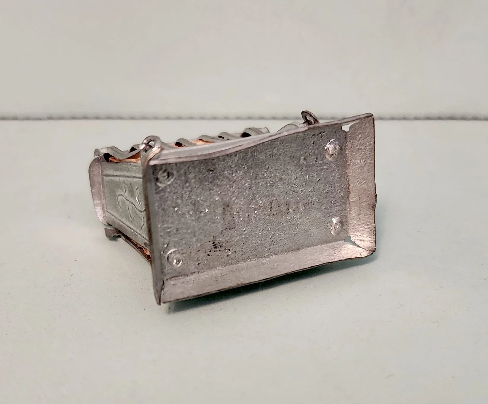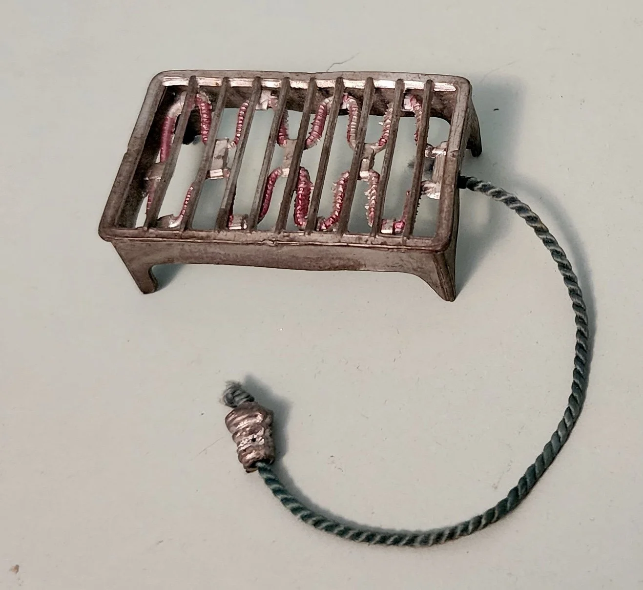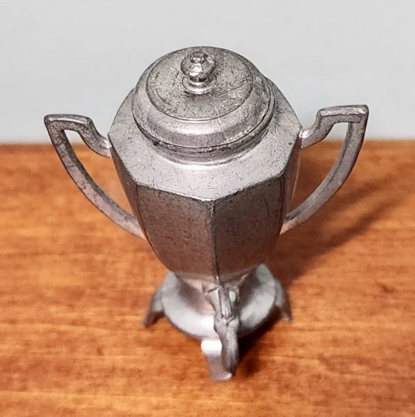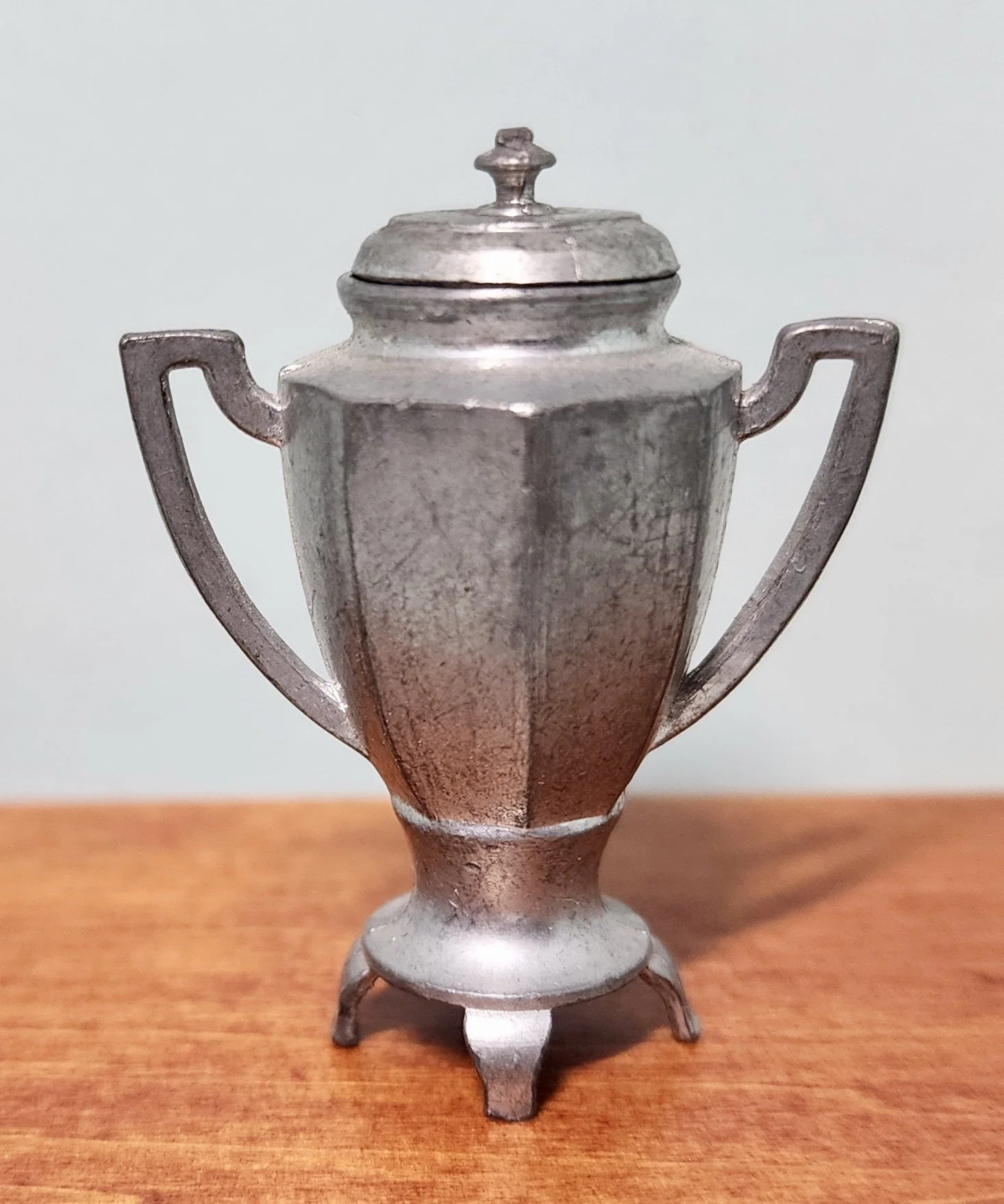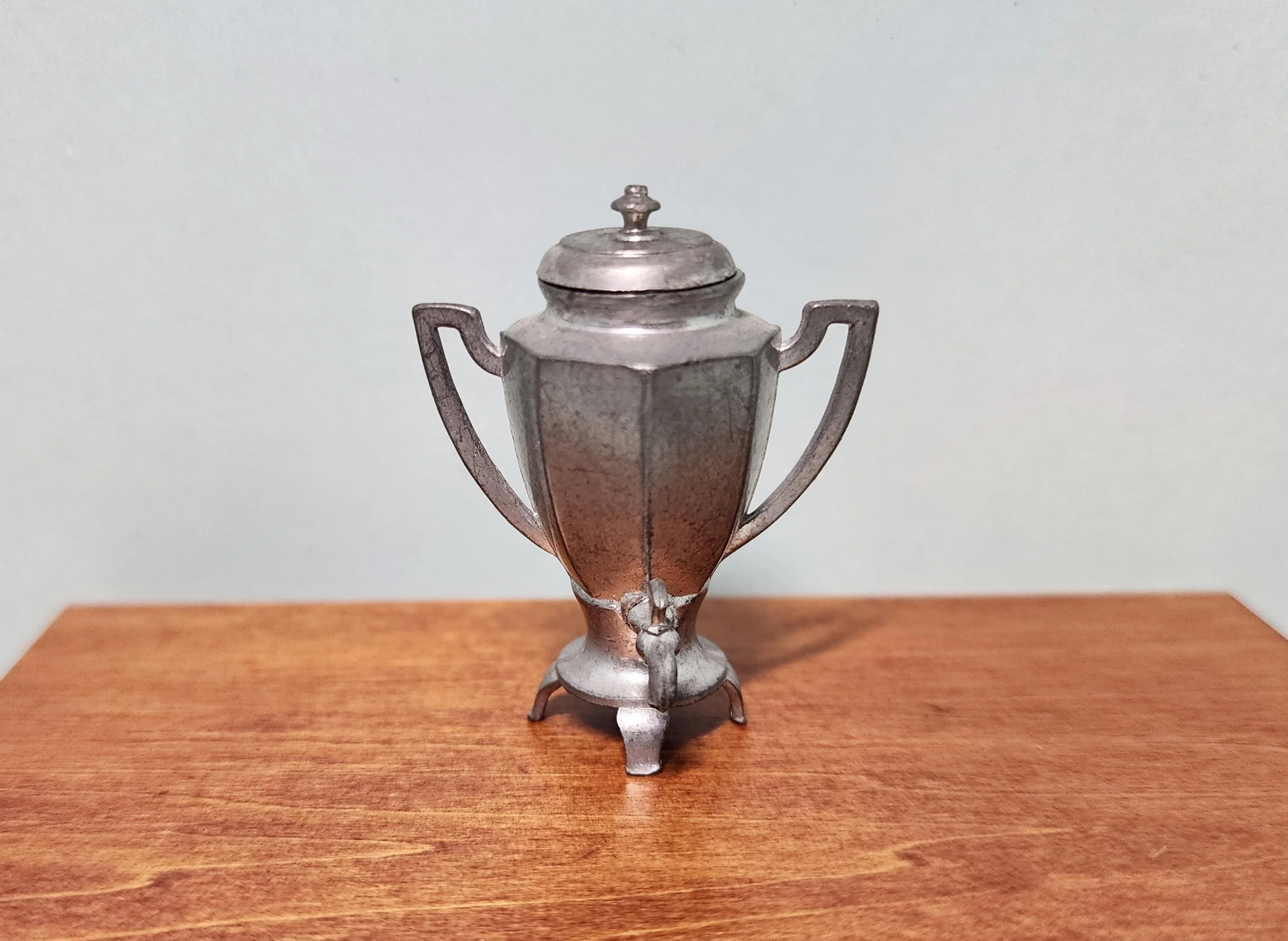 Accessories and Dolls Categories: All Dollhouses and Stores Antique and Vintage Furniture Accessories and Dolls Books and Publications All / 1930's German Metal Dollhouse Alarm Clock Pencil Sharpener $25.00 Antique German Soft Metal Mantel Clock $55.00 Antique German "Gasoline" Can $60.00 Antique Tin German Medicine Cabinet $65.00 Antique German Dollhouse Clock, Bakelite Pencil Sharpener $45.00 Vintage Metal Telephone, Made in England $20.00 Vintage Tin Coat Rack $25.00 Antique 7" China Head Doll $40.00 Antique German Tin Scale $45.00 German Soft Metal Serving Tray with Glass Insert $45.00 Antique German Dollhouse Soft Metal Cutlery Holder with Flatware $65.00 Vintage English Dollhouse Upright Vacuum $35.00 Antique German Dollhouse Typewriter $40.00 Antique German Dollhouse Tray $45.00 Antique Miniature Tin Cash Box $25.00 Antique German Coffee Server $55.00 Antique Tynietoy Hand Woven Rugs (2) $40.00 Antique German Bisque Dollhouse Man in Brown Suit $75.00 Antique German Bisque Dollhouse Doll $110.00 Antique Bisque Dollhouse Doll, Flapper Woman $70.00 Antique Bisque Dollhouse Woman 6 1/4" Tall $110.00 German Mantel Clock $55.00 German Serving Dish with Lid $5.00 German Crumb Brush and Pan $35.00 German Single Burner Hot Plate $20.00 German Metal Tea Set, 16 Pieces $95.00 German Soft Metal Electric Hot Plate $40.00 German Soft Metal Toaster With 2 Original Pieces of Toast $75.00 Vintage German Metal Coffee Set on a Tray $85.00 Vintage Miniature Black Tin Tray $25.00 Tynietoy Firewood Basket $25.00 German Metal Sewing Machine $70.00 Antique Miniature German Ballerina Figurine $25.00 Antique Tin German Dollhouse Baby Pram $25.00 Antique Gold Metal Wall Clock $85.00 Vintage German Dollhouse Lazy Susan That Actually Turns $45.00 Pair of Fancy French Dollhouse Candle Holders $35.00 Antique German Bisque 3 3/4" Dollhouse Maid $55.00 Antique Metal Serving Tray $35.00 Erna Meyer Girl in Plaid Dress $40.00 Erna Meyer Boy in Outdoor Outfit $45.00 Erna Meyer Girl in Orange Knickers $45.00 Erna Meyer Boy, Navy Blue Pants $45.00 Erna Meyer Girl in Blue Dress $45.00 Erna Meyer Dolls, Twins $65.00 Five Vintage Empty (Caco) Doll Boxes $15.00 German 5 1/2" Tall Black Bisque Dollhouse Doll $175.00 German Dollhouse Doll, 6 1/2" Tall $75.00 Pair of Small Vintage Steiff Mohair Bears $25.00 4 Vintage English Miniature Wax Dolls $45.00 Vintage German Caco Man Doctor $45.00 Vintage German Caco Man $45.00 Vintage Miniature Sugar Sample Boxes $15.00 4 Vintage Miniature Grocery Boxes $15.00 German Caco Baby in Cradle $35.00 German Caco Baby in Tin Stroller $35.00 German Caco Baby in Wicker Basket $35.00 Vintage Erna Meyer Brown Haired Baby Girl #3 $10.00 Vintage Erna Meyer Baby Girl Doll #2 $15.00 Vintage Erna Meyer Baby Doll #1 $15.00 Miniature Book, "The Call of Life", 1962 $20.00 Miniature Book, Harriet Beecher Stowe, Her Book, 1962 $55.00 Miniature Book, Grimm's Fairy Tales, 1963 $35.00 Caco Baby Doll with Changing Table and Accessories $55.00 Antique German Gottschalk Blanket / Towel Rack $32.00 1910 Gottschalk Kitchen Shelf $35.00 German Metal Push Lawn Mower, Tynietoy Accessory $65.00 German Electric Iron with Wall Plug $35.00 German Silverware Caddy with 18 Pieces of Silverware $65.00 German Three Piece Chafing Dish $55.00 German Metal Flat Iron $30.00 German Metal Cooking Set on Original Card $35.00 Antique German Kitchen Utensils in Metal Mesh Caddy $45.00 Bakelite "Art Deco" Style Table Top Radio $30.00 Antique German Tin Hinged Top Watering Can & Tub $55.00 German Kitchen Brush Holder with Brush $20.00 Vintage Pair of Metal Table Top Picture Frames, 1" Scale $30.00 Vintage 6 Piece Cleaning Set $20.00 Vintage Wooden Dollhouse Carpet Sweeper & Wooden Mop $15.00 German Painted Bisque Bride & Groom in Original Box $45.00 German wood Baby Walker with Bisque Baby Doll $35.00 German Dollhouse Table Lamp with Glass Shade $30.00 Antique German Dollhouse Lamp with Celluloid Shade $30.00 German Soft Metal Modern Style Bird Cage $25.00 Dolly Dear Book Ends with Books $20.00 Dolly Dear Framed Wall Picture $30.00 Dolly Dear Turkey Platters $15.00 Bodo Henning Cooking 4 Piece Cooking Set $15.00 Bodo Henning Dinner Set, Original Box $20.00 Vintage Turned Solid Brass Table Lamp with Removable Blue Shade $20.00 Vintage Pair of Solid Brass Table Lamps, Removable White Shades $35.00 Vintage Pair of Solid Brass Table Lamps with Burgundy Shades $35.00 Vintage Miniature Salt & Pepper Shaker with Stand $15.00 German "Miniature Kitchen Set" Mint on Card $45.00 German Sauce Pan Set on Original Card $25.00 Mint on Original Card, Set of 3 Sauce Pans, Made in Japan $20.00 Antique Small Doll Size Suitcase $35.00 Antique German Tin Canister Set of Two $55.00 Antique Wood Dollhouse Floor Lamp with Old Light Blub $20.00 Gottschalk Kitchen Rack with Metal Rod, 1910 $25.00 Vintage Tiny Dollhouse Brass Baby Pacifier $10.00 Antique German Miniature Tin Painted Bathtub, Most Likely Marklin $30.00 Antique Tin Dollhouse Stove with German Accessoried $55.00 German Soft Metal Cook Stove 1" Scale $55.00 Vintage Fireplace 3 Piece Tool Set with Stand, and Log Holder, 1" Scale $25.00 Vintage Plate of Fish with "Tripe" Sign, 1" Scale $5.00 Dowst - Tootsietoy Coffee Set, 8 Pieces $25.00 Strombecker 1" Scale Floor Lamp with Gold Swirl Shade $15.00 Strombecker 1" Scale Dark Blue Wooden Table Lamp $10.00 Grandmother Stovers "Father To Be Kit" Unopened 1957 $10.00 Vintage Metal Treadle Sewing Machine & Cash Register $10.00 Vintage Miniature Sewing Box $15.00 Vintage Wooden Christmas Garden Bridge $15.00 Vintage Metal Christmas Garden Trellis $15.00 Tiny Tin Furniture, 4 Pieces $15.00 "Bend-A-Family Mom, Brother & Sister with Stroller $10.00 "Zenith" Old Style Computer, Digital Clock $10.00